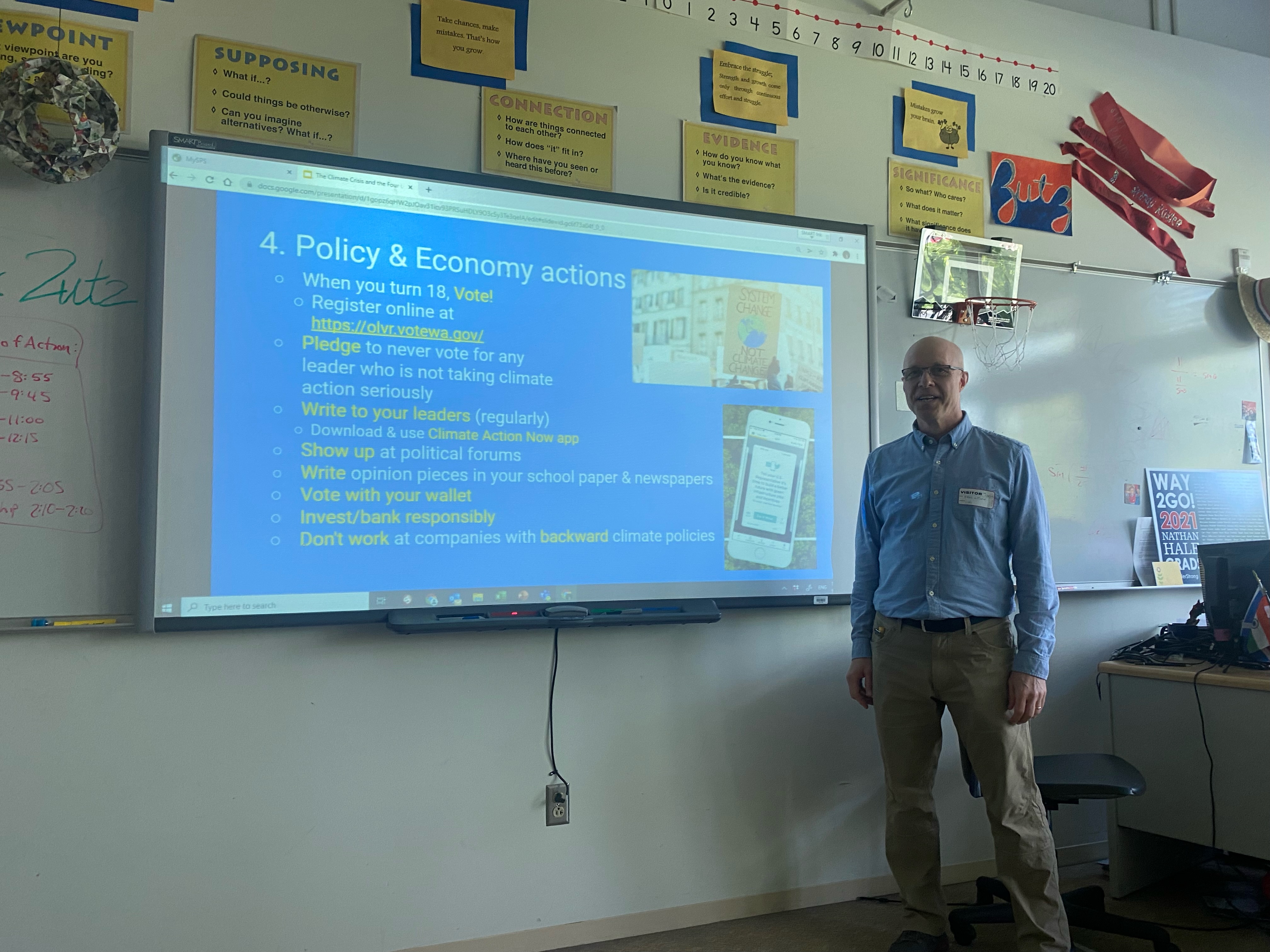 A couple of weeks ago, I spoke to Nathan Hale High School students as part of their Climate Day of Action. Hopefully, the students learned a few things from my talk, The Climate Crisis and the Four Levels of Action (you can view my presentation at tinyurl.com/cdoa-4levels), but what I want to write about today is not what I taught them, but what I learned from my day spent at Nathan Hale.